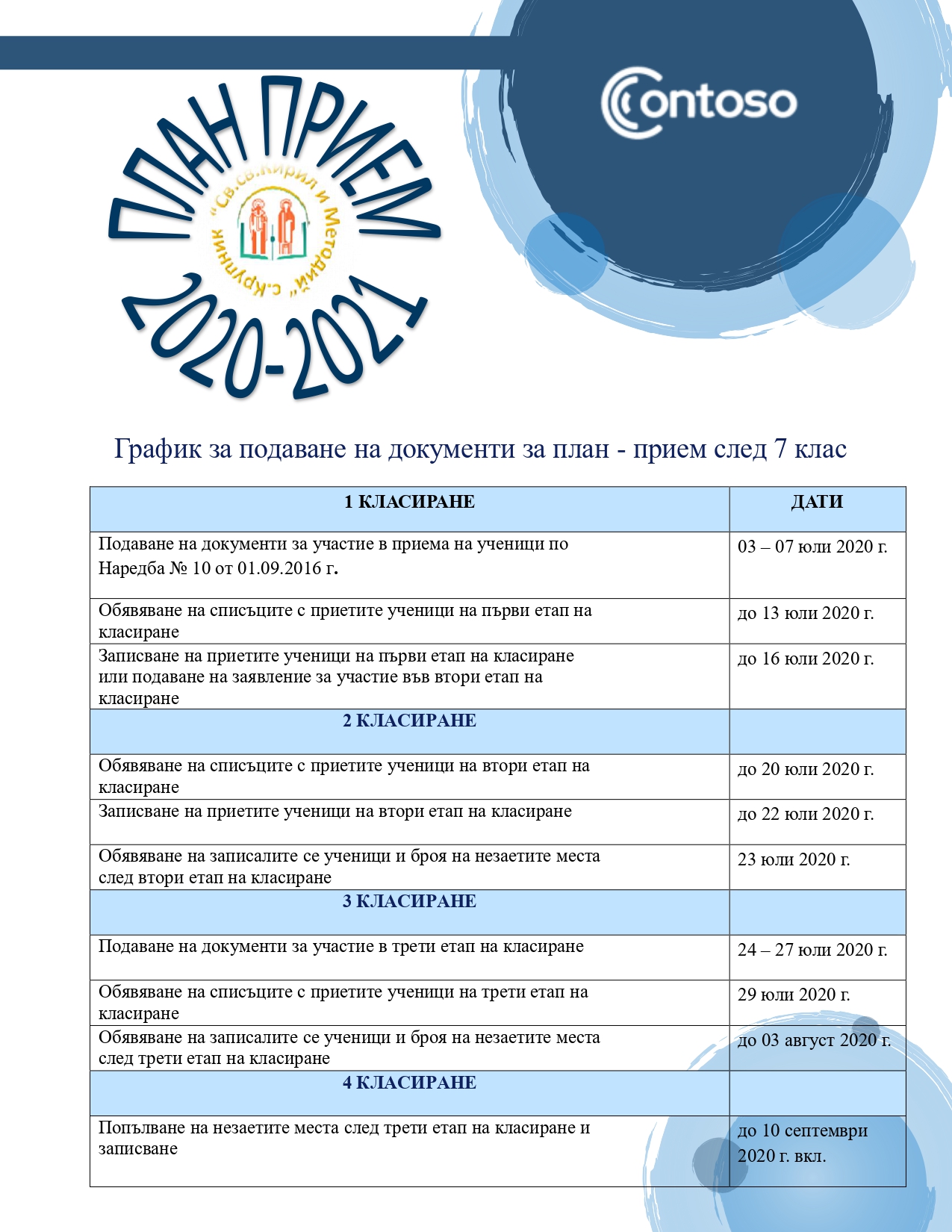 ОБЯВА ЗА ПРИЕМ В ОСМИ КЛАС ЗА УЧЕБНАТА 2020-2021 ГОДИНА