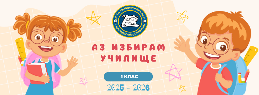 - Прием на 1/една/ паралелка с 22 ученика в първи клас за учебната 2025/2026